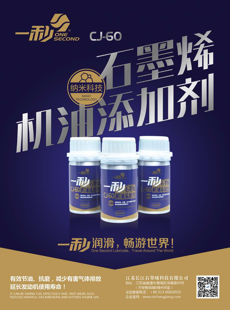 长江CJ—60石墨烯机油添加剂是由石墨烯、基础油、分散剂等复合调制而成,质量与性能稳定,用于调制各种极压抗磨及润滑性能优良的润滑油,与其它抗磨、润滑、抗氧、抗腐剂复配使用,有相乘作用。由于石墨烯独特的二维结构,超强的导电、导热、润滑、耐腐性能,超大的比表面积和超强的结构和热稳定性等,使产品具有在高温下仍保持其基本性能不变,尤其是在高温的环境下,其优异的润滑性、耐磨性、抗氧化性在发动机润滑油的使用中得以极好的体现。